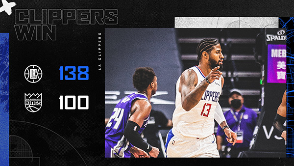 24直播网1月16日讯 NBA常规赛快船客场对阵国王,快船近来取得2连胜,开场后国王率先打出高潮,但快船马上回敬高潮完成反超,此后两队陷入僵持,第二节两队仍旧大打对攻战,乔治和小莫里斯外线手感火热逐渐帮助球队取得领先,上半场快船69-61领先8分。下半场回来快船仍旧攻势凶猛,国王则进攻断电,快船一举建立起20分领先,莱昂纳德状态出色频频砍分,此后虽然国王稍稍找回些手感,但无力弥补巨大的分差,最终快船138-100大胜国王取得3连胜。