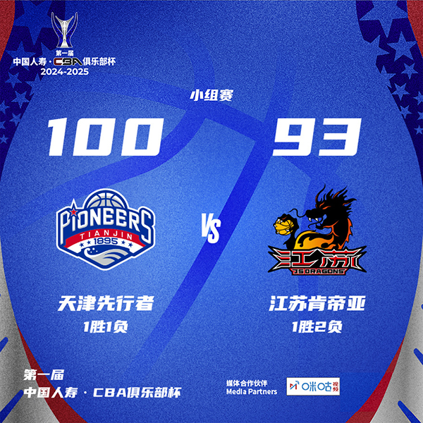 24直播网11月15日讯 CBA俱乐部杯定州赛区,天津对阵江苏。上半场,天津双外援率先发力帮助球队取得领先,江苏内外开花奋力反击,古德温得分助攻一肩挑带队反超,拉维特挺身而出连续拿分稳住局势,大卫-詹姆斯也延续火力,半场战罢天津55-49领先江苏。下半场,天津率先发力,多点开花将分差拉开到20分以上,江苏奋力反击回敬13-0的攻击波,末节双方陷入缠斗,江苏多次迫近比分,天津及时回暖锁定胜局。最终,天津100-93击败江苏。