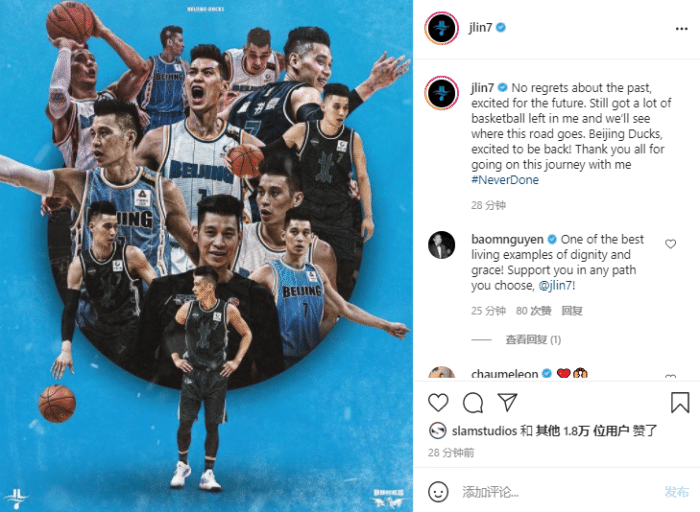 林书豪更新社交媒体,晒出多张身穿首钢7号球衣的帅照,并且写道:不后悔过去,只为未来而兴奋。(我)还有很多的篮球天赋,我们看看这条路会走到哪里,北京首钢队,很高兴回归!感谢所有和我一起踏上这段旅程的人。