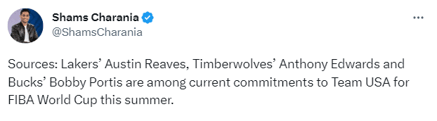 NBA六大现役球员承诺为美国队出战世界杯,其中湖人球员里夫斯曾计划为德国男篮出战世界杯,不过最终他仍旧决定为美国队效力。