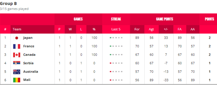 B组:塞尔维亚对阵日本女篮、法国女篮死磕加拿大队、马里女篮挑战东道主澳大利亚队;