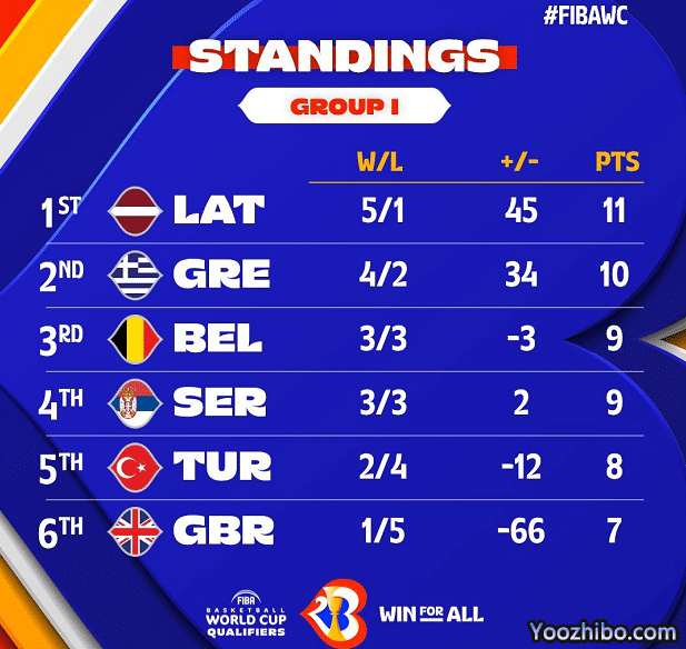 I组的拉脱维亚队5胜1负,字母哥率领的希腊男篮4胜2负位居第二名,塞尔维亚队3胜3负,积9分,目前排在小组第四。