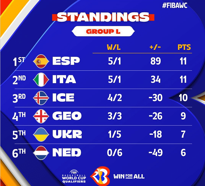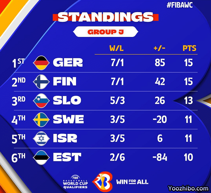 欧洲区队伍比较多,一共有4个小组,J组的芬兰男篮提前晋级世界杯正赛,同样战绩的德国队也是7胜1负,他们距离晋级只有一步之遥。