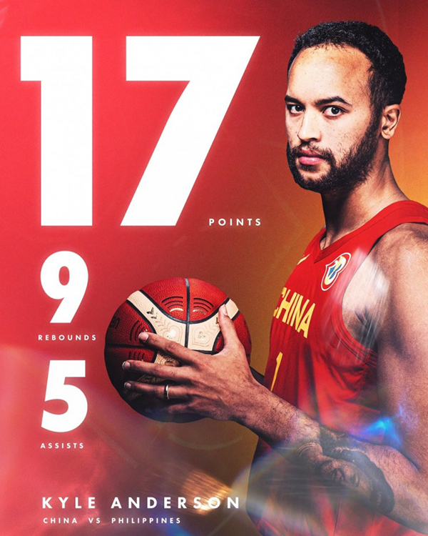 森林狼官推晒出李凯尔对阵菲律宾的数据,配文写道:李凯尔在男篮世界杯上履行了职责(中国国旗)。