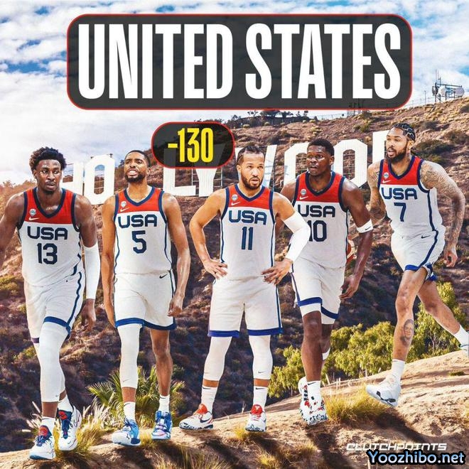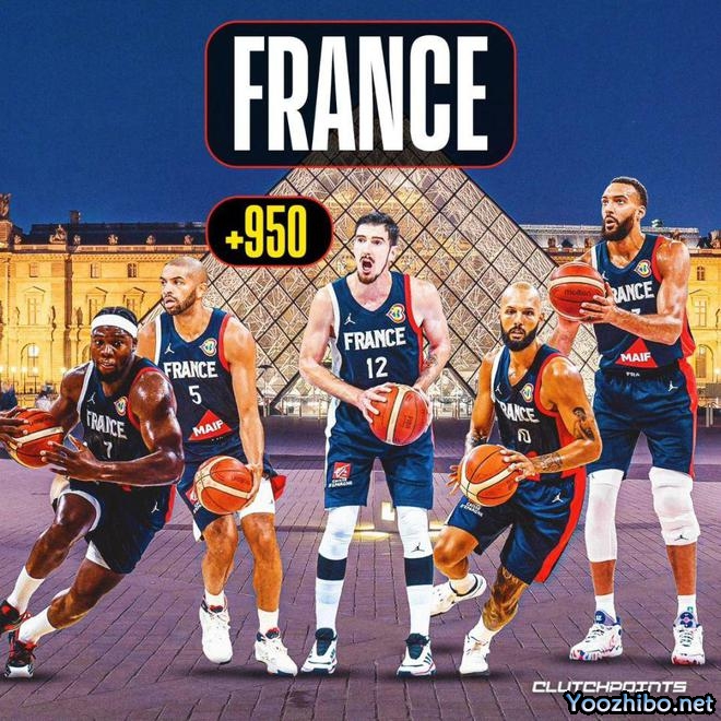 具体夺冠赔率排名如下:1.美国队(-130)、2. 法国和加拿大(同为+950)、4.澳大利亚(+1000)、5.塞尔维亚(+1500)、6.西班牙(+1600)、7.斯洛文尼亚(+2100)、8.德国(+2300)、9.意大利(+4100)、10.立陶宛(+4900)、11.希腊(+6000)、12.多米尼加和巴西(同为+9000)、14.拉脱维亚(+21000)、15.黑山(+31000)。
