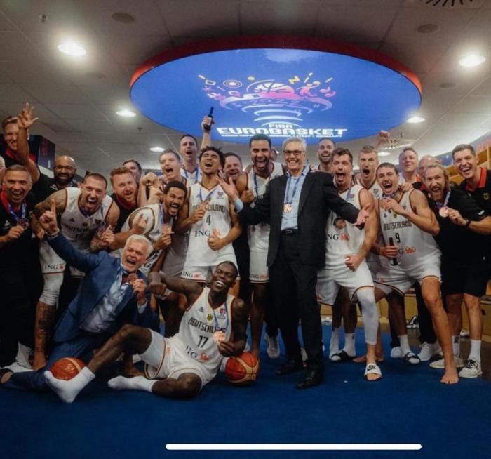 来源:24直播网09-19 12:1424直播网09月18日,2022年FIBA欧洲杯正式落下帷幕,西班牙夺冠,法国亚军和德国季军;在铜牌争夺战中,施罗德轰下26分6助攻带领德国时隔17年再次夺得国际大赛的奖牌;赛后施罗德晒照庆祝夺牌,配文写道:THIS IS FOR YOU。