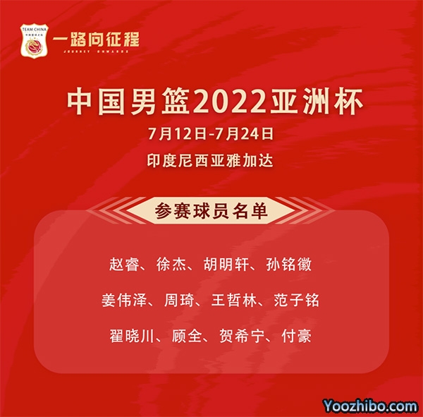 7月11日,中国男篮公布亚洲杯12人大名单