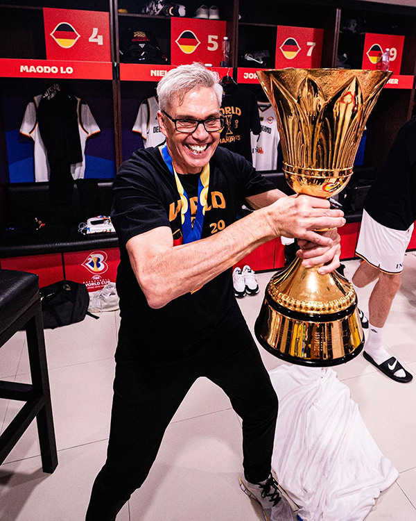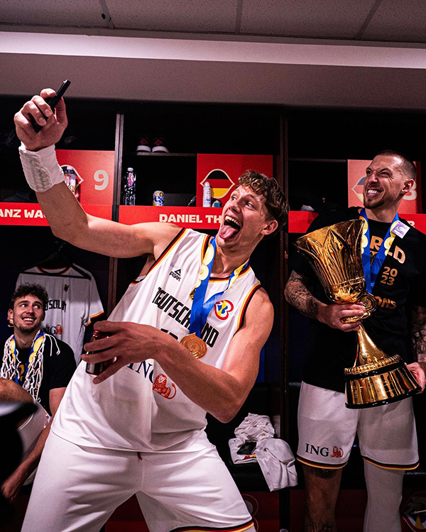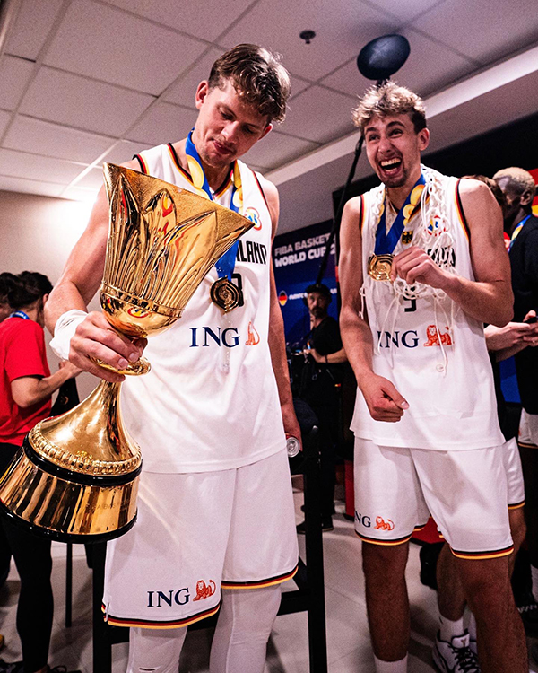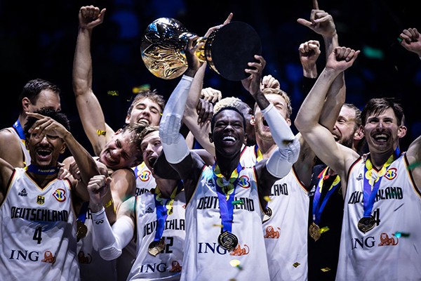 德国男篮成为今年男篮世界杯的最大赢家,小瓦格纳获得决赛MVP,施罗德夺得本届世界杯MVP以及入选最佳一阵,夺冠后德国全队激情庆祝,施罗德更是高举冠军奖杯和队友一起嗨翻天。