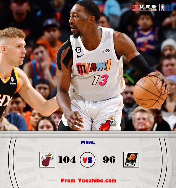 24直播网1月7日讯 今日NBA常规赛,太阳坐镇主场迎战热火,两队战绩均为20胜19负且均居于各自分区第八,其中太阳此前已经遭遇四连败,本场布克继续缺阵,希罗,约翰逊和佩恩也将缺席。比赛开局,两队很快在外线找到手感,形成对飙,热火多点开花打出一波9-0建立优势,奥拉迪波压哨超远三分投中,帮助球队领先7分结束首节比赛。次节,热火外线手感依旧延续,太阳则连续杀伤禁区紧咬比分,克雷格压哨补篮打进,半场结束热火51-46领先。易边再战,保罗因臀部酸痛退出比赛,太阳陷入得分荒,洛瑞连得8分帮助球队领先到两位数,随后太阳稍稍迫近比分,三节结束热火依旧领先5分。末节回来,热火稳扎稳打一度领先到14分,但太阳非常顽强,一波7-0重新拉回分差,但随后斯特鲁斯单人还以一波7-0,比赛逐渐失去悬念,最终热火104-96力克太阳,送给对手五连败。