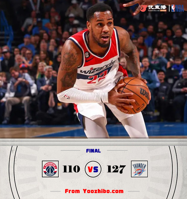 奇才(17-23):库兹马23分7助攻5篮板、加福德15分9篮板、波尔津吉斯14分10篮板、巴顿14分4篮板3助攻、莫里斯10分3助攻2篮板、古德温9分2篮板、赖特9分4助攻2篮板、八村塁5分、阿夫迪亚4分3篮板
