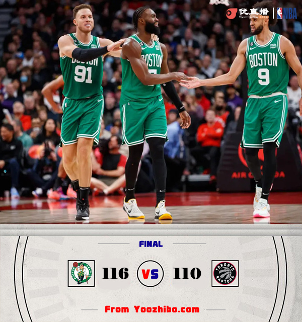 24直播网12月6日讯 NBA常规赛激战正酣,猛龙主场迎战凯尔特人,凯尔特人目前19胜5负强势领跑全联盟,上场比赛中他们力克篮网,猛龙击败魔术,目前以12胜11负的战绩暂列东部第7位。比赛开打后双方迅速找到状态,杰伦-布朗和格里芬轮番冲击内线,西亚卡姆和阿努诺比及时回应,两队多点开花陷入鏖战,首节结束时凯尔特人暂时领先2分,次节开局凯尔特人进攻停滞,西亚卡姆单节里突外投独得11分,猛龙延续火力一举反超,双方分差一度来到两位数,末段凯尔特人及时复苏缩小分差,半场战罢,猛龙反超6分。下半场,绿军双探花联手发威率队轰出11-3小高潮,末段猛龙进攻依然滞涩,塔图姆延续火力单节狂砍17分,三节结束后凯尔特人确立11分优势,末节上来,巴恩斯和特伦特联手追分,决胜时刻猛龙一波7-0保留悬念,关键时刻格里芬补篮得手,猛龙追分未果,凯尔特人力克对手。