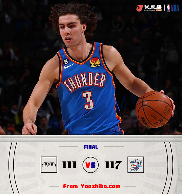 24直播网12月1日讯 NBA常规赛,雷霆主场迎战马刺。马刺近期8连败,战绩仅领先火箭半场。雷霆2连败排在西部倒数第四。亚历山大本场因伤缺阵。一开场,双方大打对攻,比分非常胶着,马刺强攻内线频频得手取得微弱领先,雷霆利用反击打出10-3的攻势一度反超。相持中马刺逐渐占据上风,瓦塞尔连投带罚将分差拉开到10分以上,雷霆命中率下降,凯尔登连中三分将优势扩大到20分,半场战罢马刺77-60领先。下半场,瓦塞尔先中三分,但此后马刺命中率骤降,雷霆多点开花不断蚕食分差,末节马刺仍无起色,雷霆越战越勇一举反超比分。关键时刻马刺连续打铁失误如愿输球。最终,雷霆完成20分的逆转战胜马刺,送给对手9连败。