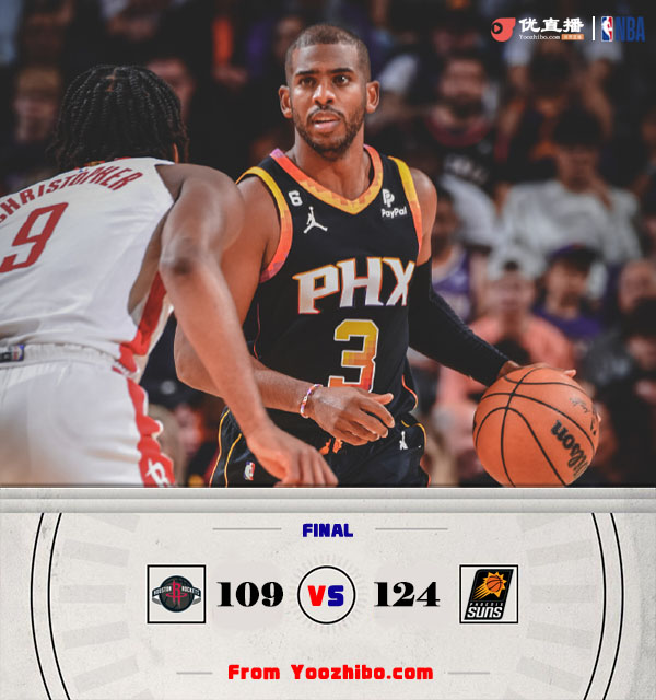 24直播网10月31日讯 NBA常规赛迎来西部球队直接对话,太阳主场迎战火箭,太阳近期迎来三连胜,目前以4胜1负位列西部第二,而火箭近期连负爵士和开拓者,1胜5负排在西部倒数第二。此役布克状态出色上半场便砍下21分,兰代尔续上火力半场也有16分进账,太阳次节末段发力拉开比分,并带着9分优势进入下半场,第三节火箭打出12-2攻击波抹平分差,末节双方小冲突后太阳获三罚一掷,布克和保罗联手守住胜势,最终太阳力克对手。