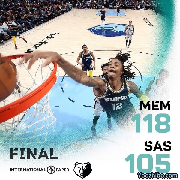 灰熊:莫兰特52分7篮板2助攻、贝恩8分3篮板7助攻、亚当斯4分14篮板5助攻、梅尔顿15分6篮板1助攻、泰厄斯-琼斯13分3篮板1助攻。