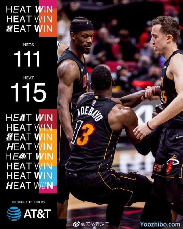 24直播网2月13日讯 NBA常规赛,热火今日迎战篮网,前者四连胜后排在东部榜首的位置,后者则是遭遇十连败下滑至东部第八位。比赛上来篮网率先进入状态取得领先,但热火随后就将比分追了回来,两队开始陷入到拉锯战,次节双方开始对攻,但是热火的外线手感实在火热,一波9-0的小高潮占据场上主动,半场结束时篮网落后6分。易边再战,热火完全占据场上主动,分差一度是突破了二十分,但是顽强的篮网在末节奋起直追并成功将比赛悬念打了回来,关键时刻巴特勒两罚中一,篮网的最后一攻被洛瑞抢断,最终热火险胜篮网,送给后者11连败。