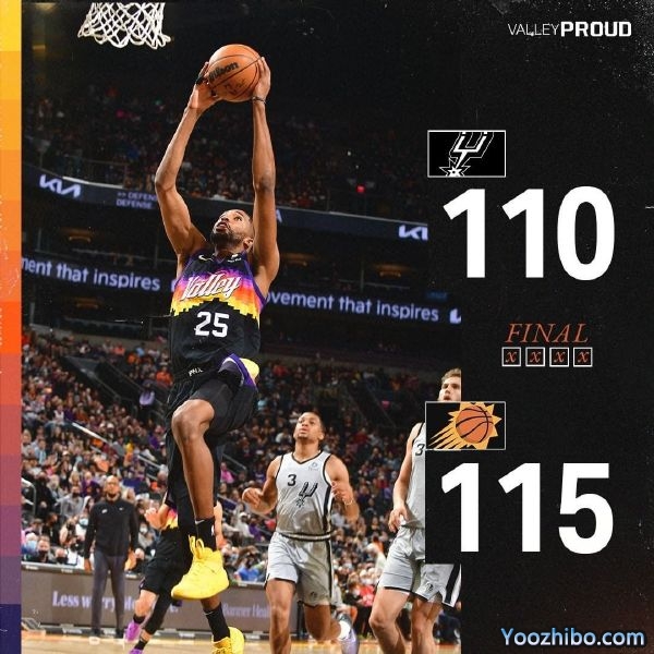 24直播网1月31日讯 北京时间除夕节日,NBA常规赛继续进行,太阳主场迎战马刺,太阳目前状态火热,一波9连胜以39胜9负的战绩稳居联盟榜首;马刺则是19胜31负排在西部第11位,本场比赛马刺穆雷、怀特等多名主力球员缺阵。开局双方上来就展开对攻战,马刺一直保持微弱领先,节末马刺凭借外线不错的手感加上内线强攻领先至8分,次节太阳终于找回手感,保罗带领众将通过中距离打出小高潮一度反超比分,但马刺也是全民皆兵迅速回应并保持住领先。第三节,马刺继续保持不错手感持续在进攻端压制住太阳,节末马刺外线手感全开下起三分雨,分差终于来到双位数,末节太阳上来就在外线下起三分雨并打出进攻高潮直接反超比分,马刺通过外线稳住局势,双方比分交替领先一直胶着到最后,关键时刻布克连续扔进读秒三分取得两球以上领先,最终太阳逆转马刺,豪取10连胜。