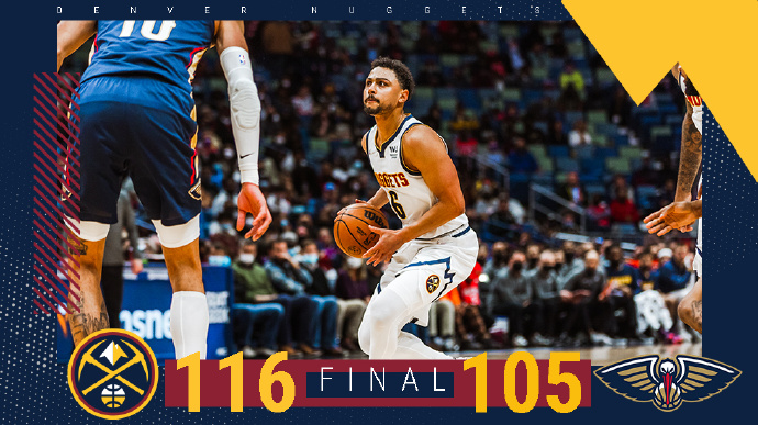 24直播网1月29日讯 NBA常规赛继续进行,鹈鹕主场迎战掘金,鹈鹕母亲18胜29负排名西部第11,而掘金则是一波3连胜,26胜21负排在西部第6位。首节格拉汉姆状态不错里突外投帮助鹈鹕打出不错开局,但之后进攻端突然断电,被约基奇和戈登联手打出进攻高潮帮助掘金领先了9分,次节鹈鹕上来接连攻击内线打出小高潮一度反超比分,但掘金通过出色的外线手感迅速回应并能保持住微弱领先优势。第三节,双方上来展开胶着拉锯战,比分多次打平,但掘金又依靠外线手感接连扔进三分再次掌握住8分领先,末节鹈鹕上来又陷入得分荒,掘金抓住机会接连扔进中远投一度领先到16分,但鹈鹕没有放弃,接连通过造杀伤续命,但约基奇站出来连得6分直接带走比赛,最终掘金力克鹈鹕,拿到4连胜。