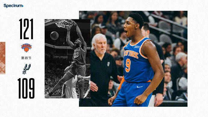 24直播网 12月8日讯 NBA常规赛,马刺主场迎战尼克斯。马刺不敌太阳之后四连胜被终结,球队目前仅仅排在西部倒数第四。尼克斯近期状态不佳,遭遇了三连败,全队只罗斯一人能保持稳定高效的发挥。一开场,双方展开拉锯战,比分交替领先。马刺打成9-0的攻击波,尼克斯迅速回敬7-0的攻势,首节结束两队战成28平。次节比赛,尼克斯逐渐占据场上主动,内外开花取得两位数领先,马刺全民皆兵奋力反击,尼克斯连中两个三分维持优势,半场战罢尼克斯62-56领先6分。易边再战,尼克斯先中两个三分,马刺强攻内线回敬7-0的攻势,尼克斯持续发力,连续4记三分扩大领先,穆雷和福布斯先后命中三分苦苦支撑,三节打完尼克斯领先14分。第四节,两队围绕着10分左右的分差展开激烈争夺,怀特和穆雷联手拿分迫近分差,兰德尔连续单打得手稳住局势。巴雷特三分命中后马刺投子认负,最终,尼克斯客场战胜马刺,结束了自己的三连败。