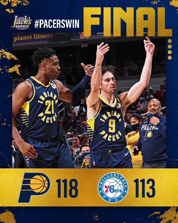 24直播网11月14日讯 NBA常规赛继续进行,步行者主场迎战76人,步行者本赛季状态一般目前排名东部第12,而76人也是由于健康与安全协议问题多名主力缺阵,经历3连败目前掉落至东部第6。开局双方都迅速进入状态,上来就展开对攻战,76人率先找到外线手感,但小萨博尼斯联手J-霍勒迪接连取分为步行者建立7分领先,次节J-霍勒迪外线手感炸裂连中记三分帮助步行者拉开20分以上的分差,随后76人外线手感也很火热,双方展开三分对飚,末段铁林也接连扔进三分帮助76人追到10分分差。第三节,76人众将连续冲击步行者内线造杀伤靠罚篮追分,但步行者今天外线三分手感无敌接连给出回应,三节结束步行者依然领先12分,末节76人依靠外线三分连续追分,但马丁成为奇兵,里突外投连续回应帮助步行者守住双位数领先优势,面对76人的追分麦康纳又站出来接连回应,分差始终保持在10分左右,最终步行者力克76人,送给对手4连败。