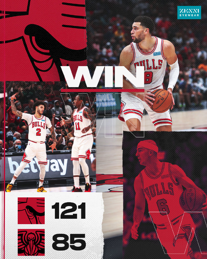 公牛:鲍尔19分、拉文21分、武切维奇16分10篮板、德罗赞12分6篮板、格林7分6篮板、卡鲁索10分5篮板5助攻、布朗5分