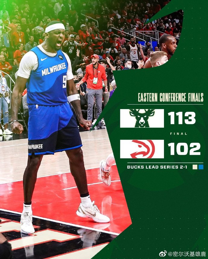 雄鹿(2-1):米德尔顿38分11篮板7助攻,阿德托昆博33分11篮板4助攻,洛佩兹10分3篮板,霍勒迪6分4篮板12助攻2封盖,波蒂斯15分4篮板2抢断,康诺顿5分8篮板,塔克3分8篮板2助攻。