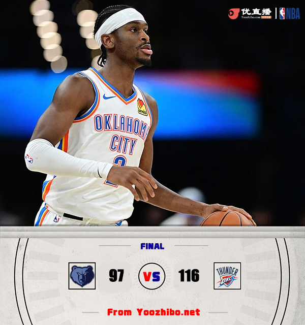 24直播网12月19日讯 雷霆今日坐镇主场迎战灰熊,雷霆近期状态不错12月份里取得5胜2负的战绩,灰熊整体发挥不佳近期遭遇一波4连败。首节对决灰熊仅仅打了半节的好球,前半段他们和对手纠缠一度还拿到领先,不过后半段进入轮换他们的阵容厚度劣势显现出来,而雷霆依靠一波12-2的攻势接管比赛;次节灰熊进攻端能得分奈何防守端问题依旧,雷霆末段三分三连击帮助球队拿到15分的优势进入下半场。休息归来灰熊状态急剧下滑,这一节连进攻也没了单节仅得13分,雷霆笑纳大礼单节再胜13分并在第三节结束时就取得28分的领先,巨大分差也让比赛早早失去悬念。最终,雷霆主场大胜灰熊拿下比赛。