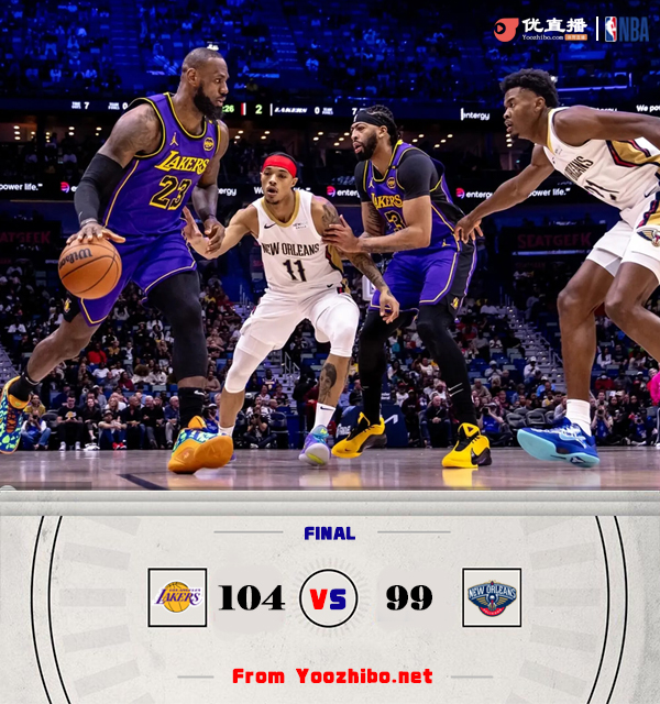 24直播网讯北京时间11月17日讯 NBA常规赛今日继续开打,鹈鹕坐镇主场迎战4连胜的湖人,鹈鹕方面伤病依旧严重,以锡安、麦科勒姆为首的核心继续缺席比赛,湖人方面八村磊、范德比尔特等关键球员也因伤缺阵。首节之争鹈鹕在短暂拉锯后突出重围,他们在英格拉姆的带领下送出11-0的攻势一举拉开比分并奠定整个上半场的领先;湖人方面打得比较被动,尤其是替补端的贡献依旧不多,整个上半场湖人的替补端仅贡献4分,与之相反的是鹈鹕替补这边有19分入账成为球队半场取得10分领先的关键。休息归来湖人双核詹姆斯和浓眉哥站出来连续拿分,加之克内克特神勇三节拿到21分,湖人送出18-7的攻势一举反超比分。不过鹈鹕也在末节及时回暖和湖人周旋将悬念留到最后,决胜时刻詹姆斯站出来连续飚进两记三分为球队奠定胜局。最终,湖人力克鹈鹕迎来5连胜。