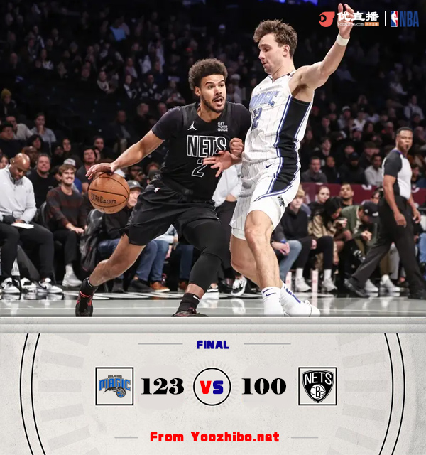 24直播网讯北京时间11月30日讯 NBA杯东部A组,魔术对阵篮网,魔术最近状态火热取得4连胜,篮网对阵西部豪强也是表现给力拿到3连胜,本场比赛托马斯和施罗德双双缺阵。开场后卡梅隆-约翰逊和威尔逊手感火热接连命中三分帮助篮网取得领先,魔术则是在小瓦格纳的带领下通过一波13-2的攻势反超比分。第二节回来两队命中率都出现下滑,卡梅隆-约翰逊和小瓦格纳对飚得分,在半场结束前魔术外线突然爆发打出13-0的高潮将比分拉开。易边再战,魔术外线手感依旧火热,他们三分雨下继续扩大领先优势。最后一节场上分差一直在20分左右,篮网无力缩小分差,最终魔术123-100大胜篮网取得5连胜,篮网3连胜被终结。