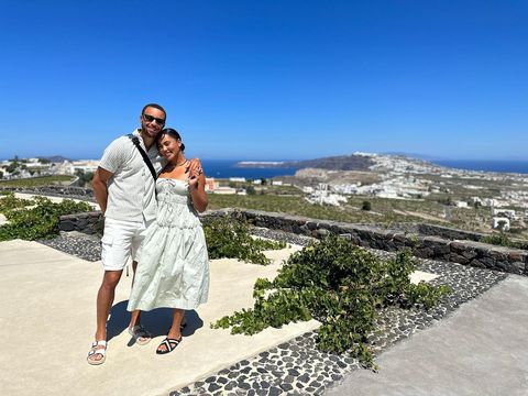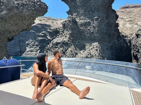 库里和阿耶莎正在希腊庆祝他们的结婚周年纪念日,库里夫妇乘坐游艇出海尽享二人世界,库里和阿耶莎躺在游艇上享受日光浴,两人合影库里赤膊亮相十分抢镜,阿耶莎搞怪吐舌,他们还一起享受美食。
