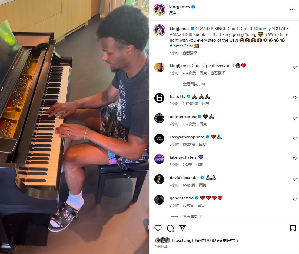 布朗尼弹钢琴全家围观!詹姆斯终于笑了 喊话:我们会陪你走每一步