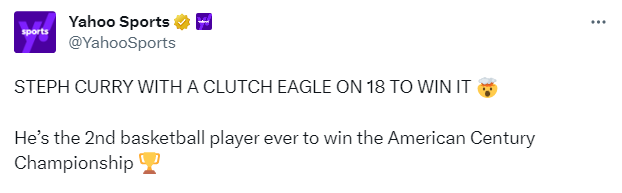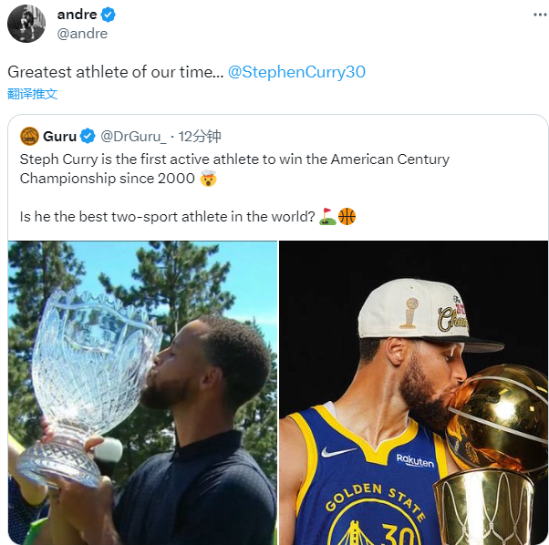 美媒纷纷刷屏祝贺库里,NBA Central发推写道:库里冠军;TA恭喜库里的同时写道:从篮球上到高尔夫赛场,库里真的无所不能。