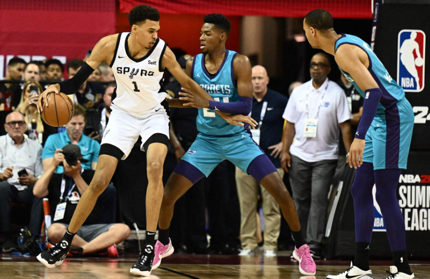 第一节最后1分多钟,2米24的文班亚马展现不俗的运球能力,如此身高仍能变向过人;文班亚马的威胁很大,持球背打米勒,瞬间吸引黄蜂多名球员包夹,不过文班亚马没顶动米勒,最终出现失误。