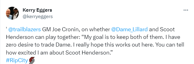 不过开拓者拒绝交易利拉德,并且拒绝与任何球队谈判交易利拉德,不久前,开拓者总经理克罗宁表示:我的目标是同时留住利拉德与亨德森,我对交易利拉德的兴趣为零,我希望这事能尽快解决,你可以看出我对亨德森有多兴奋。