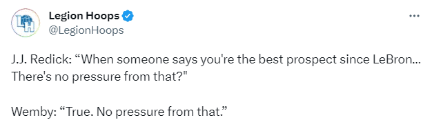下一个詹姆斯?文班亚马回应被称为詹姆斯后最有潜力球员:没有压力