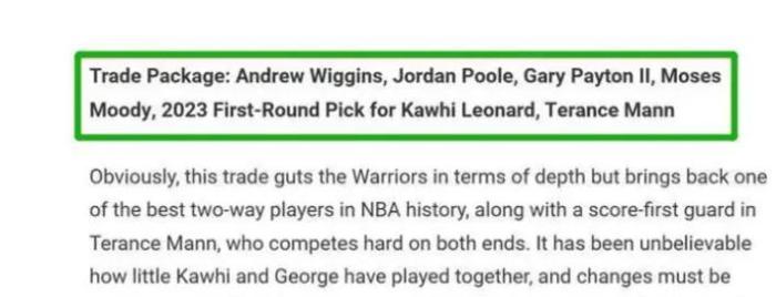 5换2,勇士交易方案曝光,普尔下家曝光,库里喜迎超巨帮手