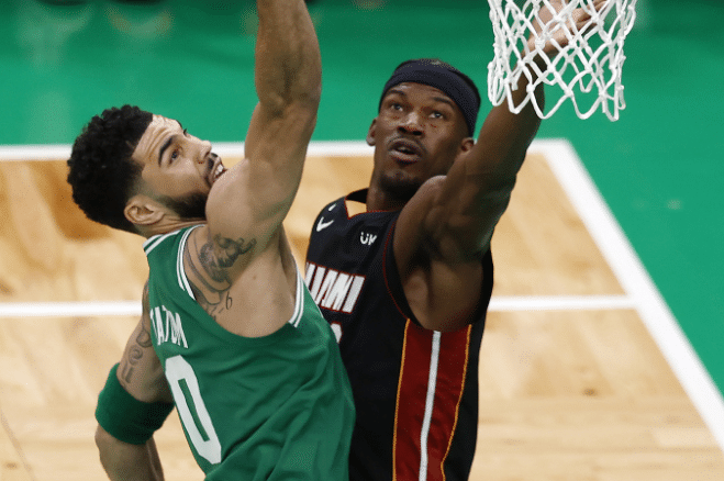 东决抢七,巴特勒带队上半场一度领先17分,半场打完领先11分,下半场两队激烈对决,最终热火拿下关键一战,巴特勒拒绝出局,拒绝让热火成为史上第一支3-0领先被逆转的球队,总比分4-3复仇凯尔特人。