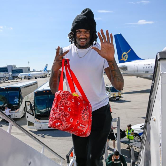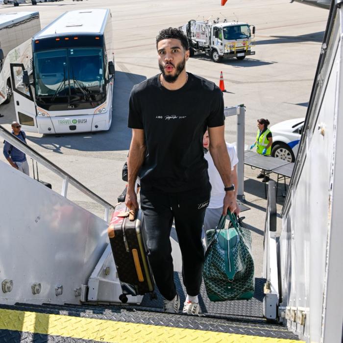 绿军众将带着胜利返回波士顿,塔图姆登机时提着行李,吹着口哨瞪大双眼,开心之情溢于言表;G6绝杀英雄怀特戴着棒球帽、背着双肩包,表情十分抢镜;杰伦-布朗戴着针织帽,帽子挡住了眼睛,一脸严肃的表情。