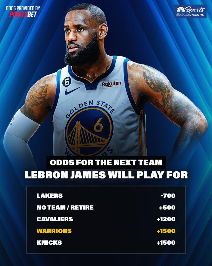 PointsBetUSA今日给出了詹姆斯的最新下家赔率,具体赔率排名如下: