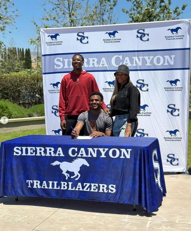 布莱斯目前身高6英尺6英寸(约198cm),上个赛季他在塞拉峡谷和他的哥哥布朗尼一起打球,布朗尼本月早些时候加入了南加州大学。