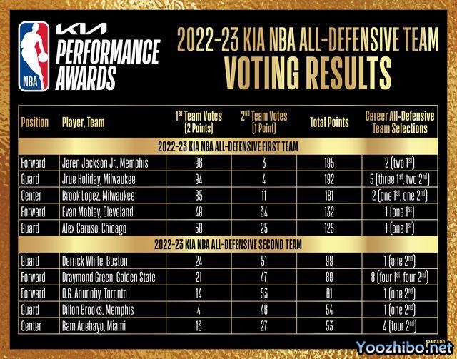 来源:24直播网05-10 11:0624直播网05月10日,NBA官方公布了2022-23赛季常规赛最佳防守阵容。