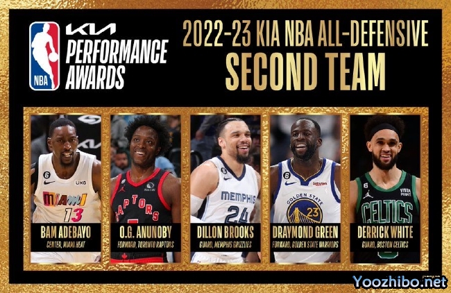 最佳防守二阵:巴姆-阿德巴约(迈阿密热火)、OG-阿努诺比(多伦多猛龙)、狄龙-布鲁克斯(孟菲斯灰熊)、追梦格林(金州勇士)、德里克-怀特(波士顿凯尔特人)
