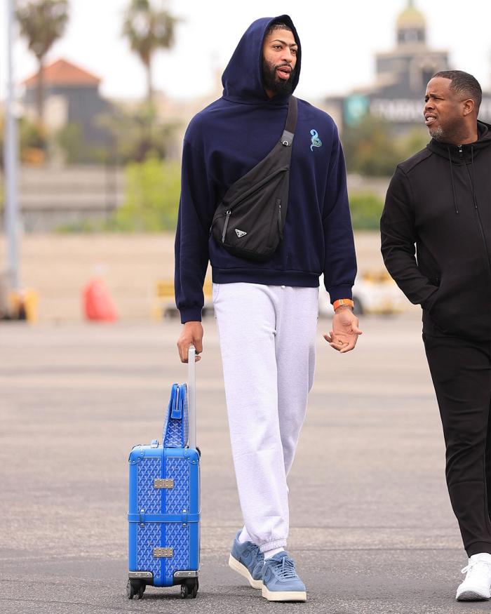 浓眉身穿运动裤和黑色连帽卫衣,推着蓝色行李箱,表情相对轻松;浓眉G4全场16投10中轰下23分15篮板3抢断,关键时刻成功防住库里,浓眉不仅是G4赢球功臣,而且是整个系列赛的风向标。