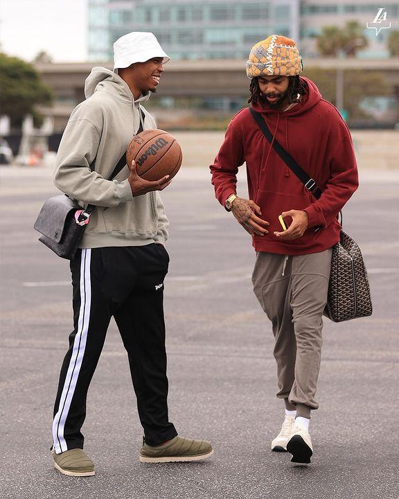 湖人G4赢球另一大功臣朗尼-沃克单手抄兜、单手托球以及抱球亮相,和拉塞尔有说有笑,咧嘴大笑十分开心;湖勇G4末节,沃克9投6中爆砍15分,犹如乔丹附体,一个人打爆勇士,成为1997年科比之后湖人队史第一位在季后赛替补末节至少轰下15分的球员。
