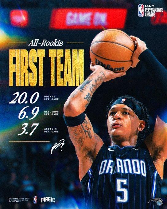 来源:24直播网05-09 11:3524直播网05月09日,NBA官方公布了本赛季的最佳新秀阵容,魔术状元保罗-班凯罗全票入选一阵,火箭探花小贾巴里-史密斯入选二阵。
