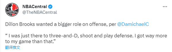 据灰熊记者Damichael Cole报道,狄龙想要更大的角色,但灰熊无法提供,狄龙曾表示:我只是一个3D,在那里投篮和防守,我的比赛远不止于此。