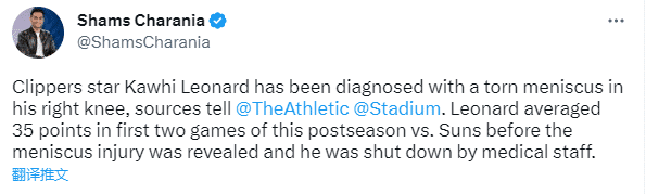 24直播网讯04月27日快船首轮1-4被太阳淘汰出局之后,小卡的真实伤情曝光,据名记shams报道,小卡遭遇右膝半月板撕裂,G2后查出如此伤情,快船医疗团队让其不要再出战;小卡最多需要休养6个月,因伤取消中国行,不过快船仍旧相信未来他和乔治能带队夺冠。