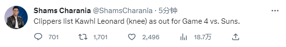 快船随队记者Farbod Esnaashari透露,昨天有很多球员和教练说他们为莱昂纳德感到难过,这让我觉得他不可能在G3结束36个小时后回来打第四场比赛,不知道他是否能在第五场比赛中复出,G3和G4之间的赛程安排也很糟糕。