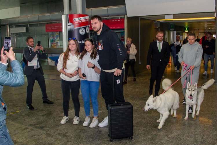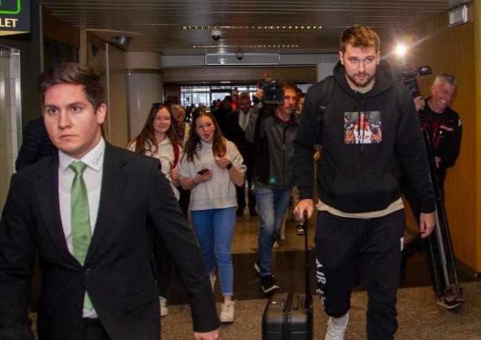 东契奇回国抵达斯洛文尼亚:女友牵狗跟随 美女偶遇并与他成功合影