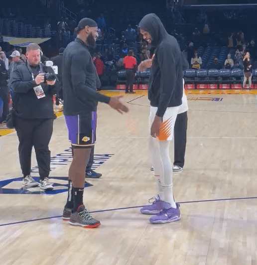 詹皇主动拥抱杜兰特:两人有说有笑开怀热聊 湖人三巨头确定出战太阳