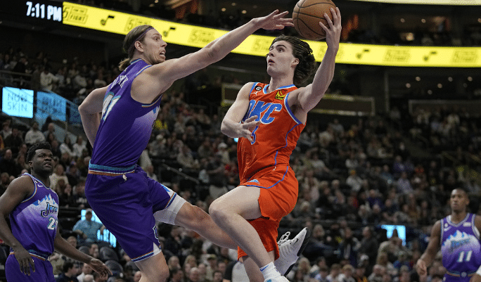 来源:24直播网04-07 15:1224直播网04月07日讯 ,NBA常规赛继续进行,雷霆击败爵士,这样爵士正式出局,无缘季后赛。此役主场作战的爵士轮休了马尔卡宁、塔克和塞克斯顿等人,残阵出击。雷霆上半场一度建立大比分的领先优势,但半场结束前断电被对手缩小分差,下半场鏖战,雷霆在亚历山大、基迪等人的带领下,拿下胜利,结束近期的3连败。